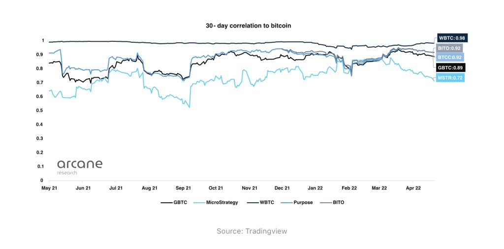 比特币与某些投资工具之间的高度相关性进一步证实了这些工具对市场的影响力。