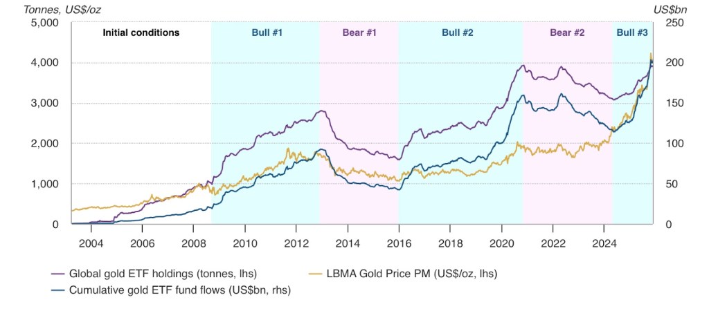 • 央行決定黃金的「結構性底部需求」,ETF與投資金條則決定價格對宏觀敘事的放大程度